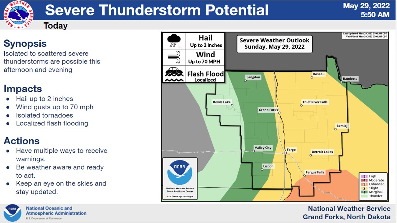 Nws Grand Forks On Twitter Severe Weather Is Possible This Afternoon Evening Impacts Include Large Hail 70 Mph Wind Gusts Isolated Tornadoes Localized Flash Flooding Make Sure You Are